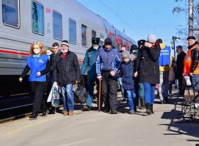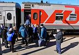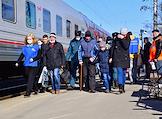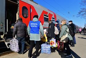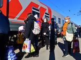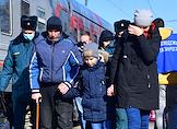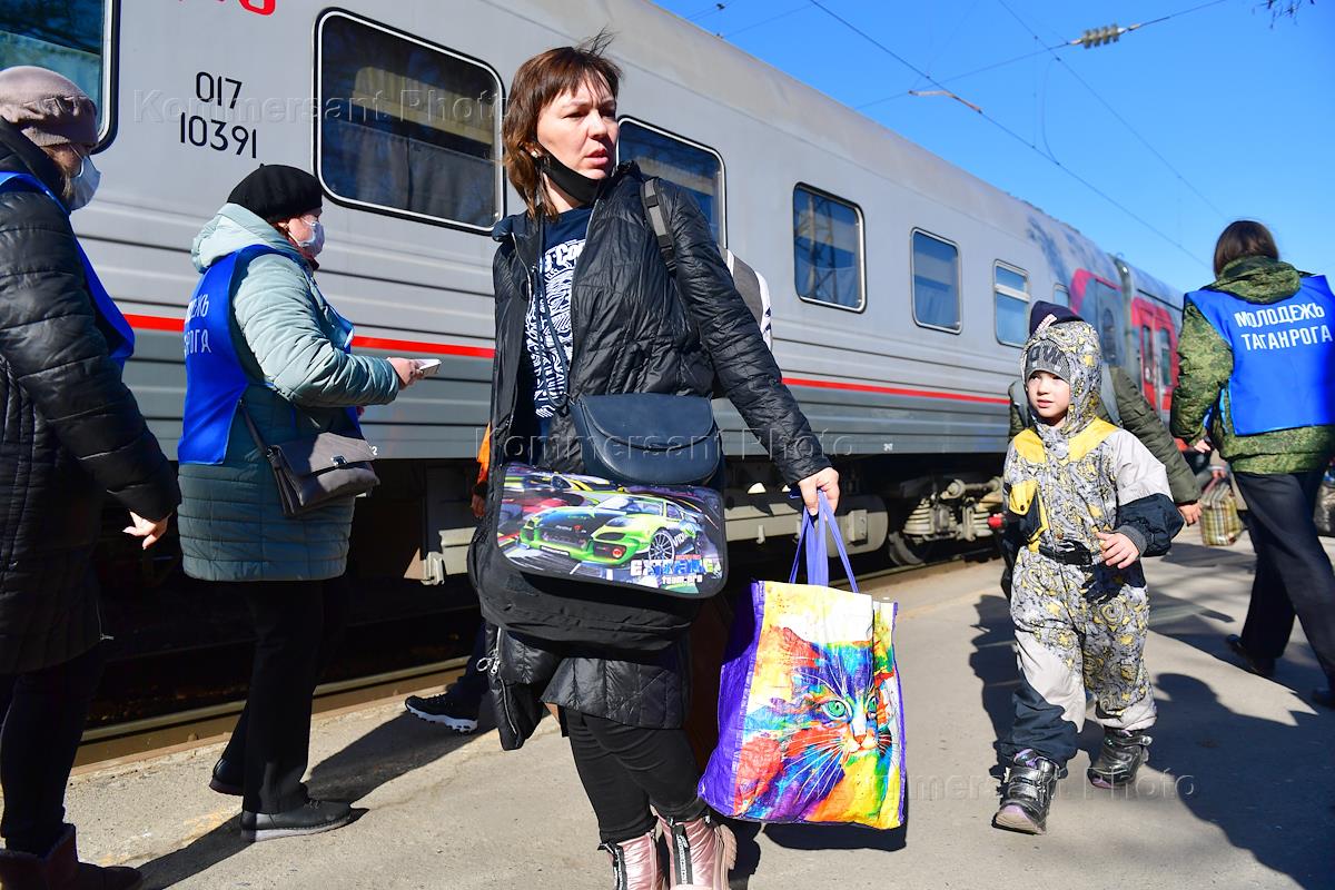 Ситуация в Ростовской области в период обострения ситуации в самопровозглашенных Донецкой Народной Республике (ДНР) и Луганской Народной республике (ЛНР). Прибытие эвакуированных граждан ДНР в Ростовскую область. Эвакуированные граждане Донецкой Народной Республики (ДНР) на перроне железнодорожного вокзала отправляются в Белгород.