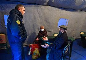 Ситуация в Ростовской области в период обострения ситуации в самопровозглашенных Донецкой Народной Республике (ДНР) и Луганской Народной республике (ЛНР). Прибытие эвакуированных граждан ДНР в Ростовскую область. Палаточный лагерь для эвакуированных граждан Донецкой Народной Республики (ДНР) на железнодорожной станции "Таганрог-1".