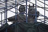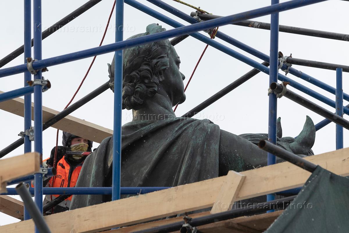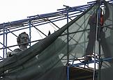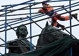 Виды Санкт-Петербурга. Жанровая фотография. Демонтаж строительных лесов с памятника императору Петру Первому "Медный всадник" на Сенатской площади после завершении реставрации.