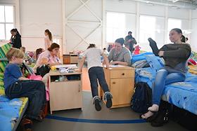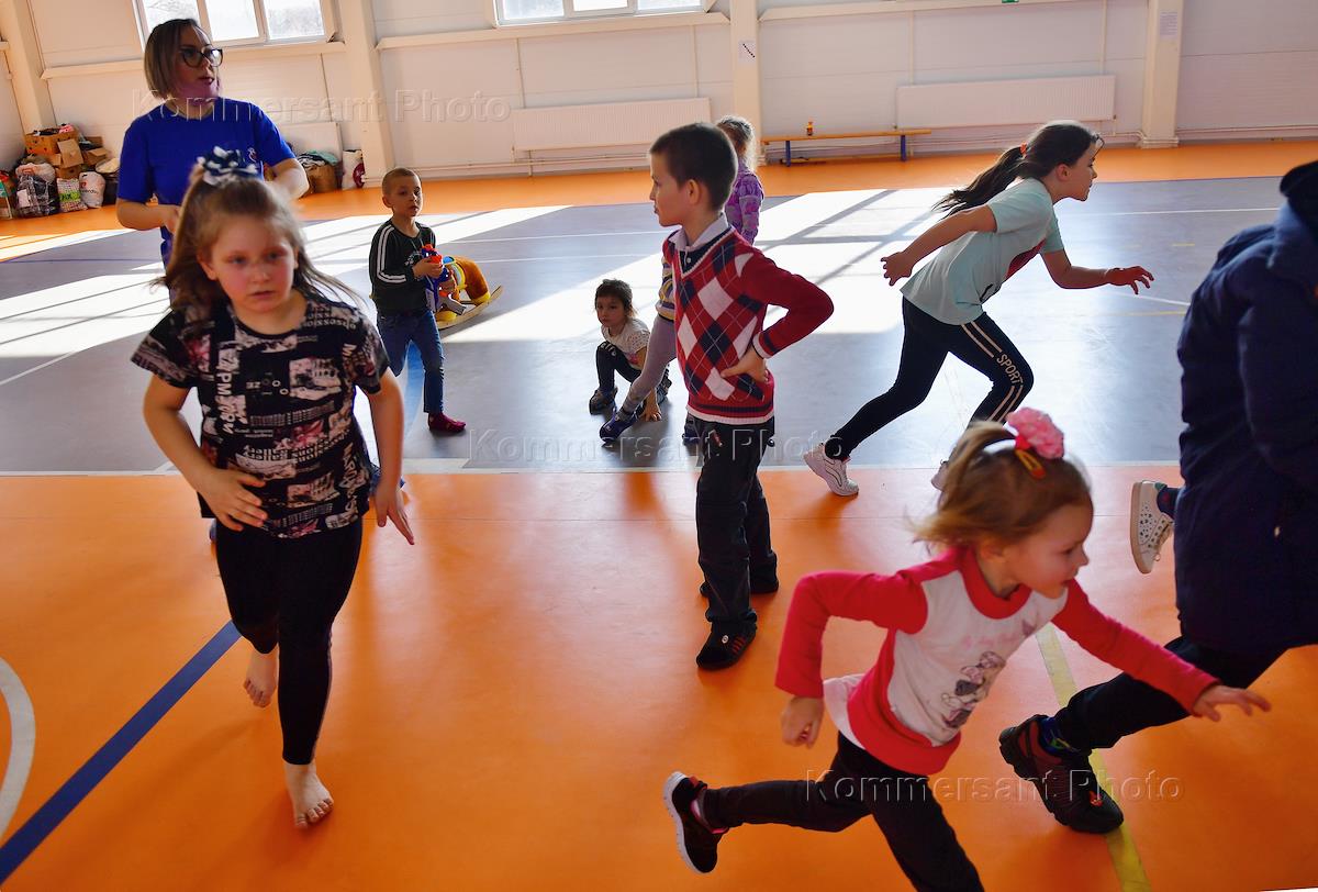 Ситуация в Ростовской области в период обострения ситуации в Донецкой Народной Республике (ДНР) и Луганской Народной республике (ЛНР). Эвакуированные жители Донбасса в пункте временного размещения на базе спорткомплекса хутора Ленина.