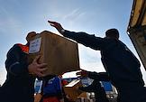 Ситуация в Ростовской области в период обострения ситуации в Донецкой Народной Республике (ДНР) и Луганской Народной республике (ЛНР). Члены Российского союза спасателей в центре сбора гуманитарной помощи для эвакуированных граждан ДНР и ЛНР.