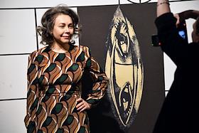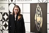Презентация лимитированного альбома тиражной графики Айдан Салаховой "Секретный орнамент" в галерее "Триумф". Журналистка Божена Рынска на презентации.