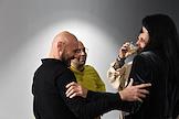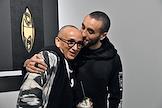 Презентация лимитированного альбома тиражной графики Айдан Салаховой "Секретный орнамент" в галерее "Триумф". Совладелец галереи "Триумф" Емельян Захаров (слева) и продюсер Александр Роднянский (в центре) на презентации.