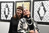 Презентация лимитированного альбома тиражной графики Айдан Салаховой "Секретный орнамент" в галерее "Триумф". Художник Айдан Салахова (слева) и общественный деятель, писатель Ирина Хакамада (справа) на презентации.