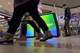 Жанровая фотография. Клиенты Сбера у банкоматов в торговом центре.