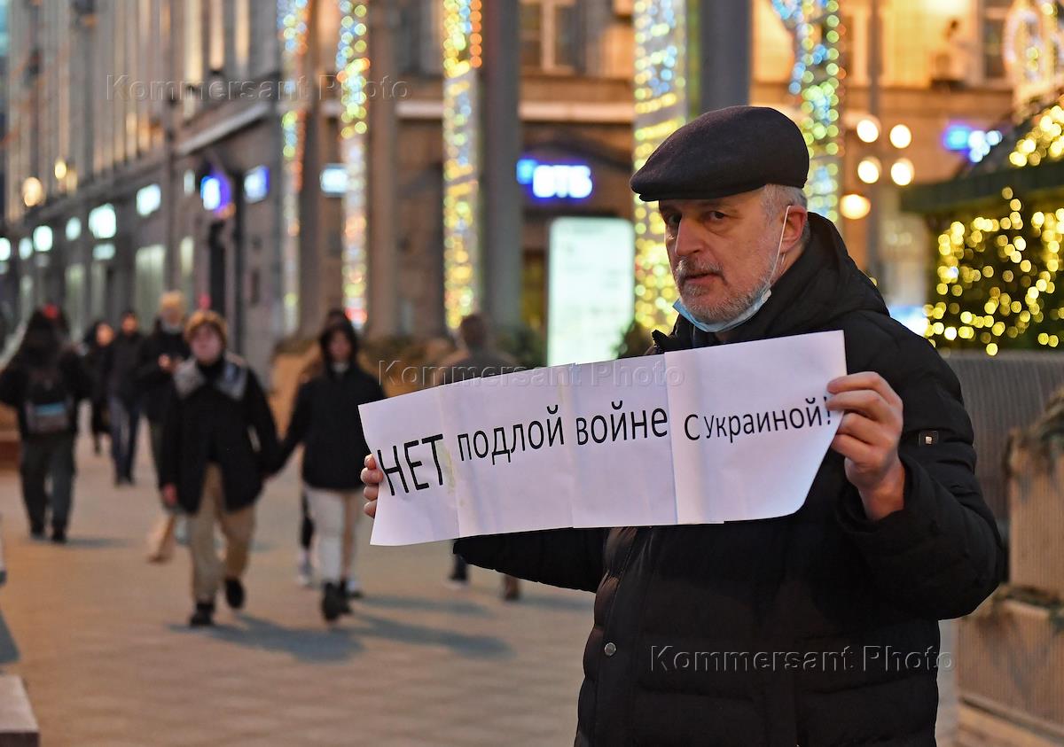 A participant in a rally against a special military operation in Ukraine holds a poster "No vile war with Ukraine!" on Pushkinskaya Square. On the morning of February 24, Russian President Vladimir Putin announced the start of a special military operation in Donbas during an urgent address on the air. Against the background of the aggravation of the situation, the Donetsk and Lugansk People's Republics announced on February 18 the organization of the departure of the population to Russia, on February 19 - the general mobilization of citizens.