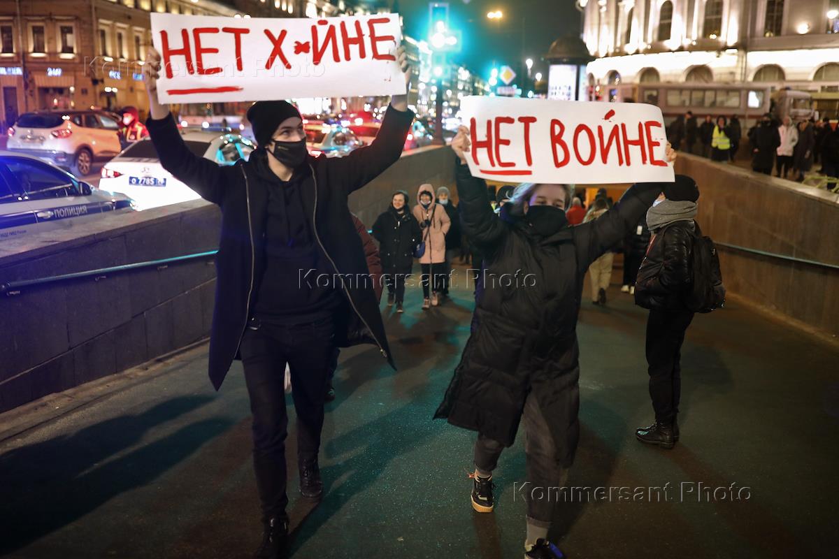 Антивоенная акция движения "Время" "Нет войне!" на Невском проспекте у Гостиного двора.