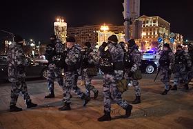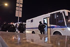Несогласованная акция против специальной военной операции на Украине на Пушкинской площади. Утром 24 февраля президент России Владимир Путин во время срочного обращения в прямом эфире объявил о начале специальной военной операции на Донбассе. Донецкая и Луганская Народные Республики на фоне обострения ситуации объявили 18 февраля об организации выезда населения в Россию, 19 февраля - о всеобщей мобилизации граждан. Сотрудники полиции во время дежурства в подземном переходе.