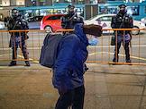 Несогласованная акция против специальной военной операции на Украине на Невском проспекте у Гостиного двора. Утром 24 февраля президент России Владимир Путин во время срочного обращения в прямом эфире объявил о начале специальной военной операции на Донбассе. Донецкая и Луганская Народные Республики на фоне обострения ситуации объявили 18 февраля об организации выезда населения в Россию, 19 февраля - о всеобщей мобилизации граждан. Сотрудники полиции во время оцепления места проведения акции.