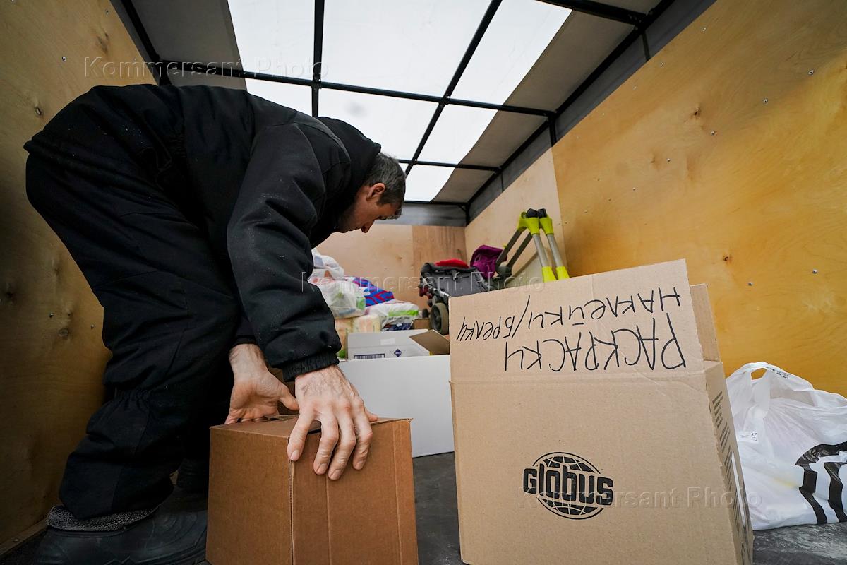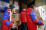Отправка гуманитарной помощи беженцам из Донбасса в пункт временного размещения в городе Клин из города Балашиха членами Общественной палаты и организации "Волонтеры Подмосковья".