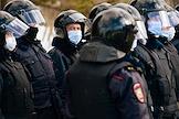 Несогласованная акция против специальной военной операции на Украине на площади Ленина. Утром 24 февраля президент России Владимир Путин во время срочного обращения в прямом эфире объявил о начале специальной военной операции на Донбассе. Донецкая и Луганская Народные Республики на фоне обострения ситуации объявили 18 февраля об организации выезда населения в Россию, 19 февраля - о всеобщей мобилизации граждан. Сотрудники полиции во время акции.