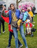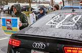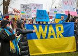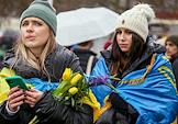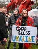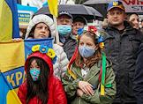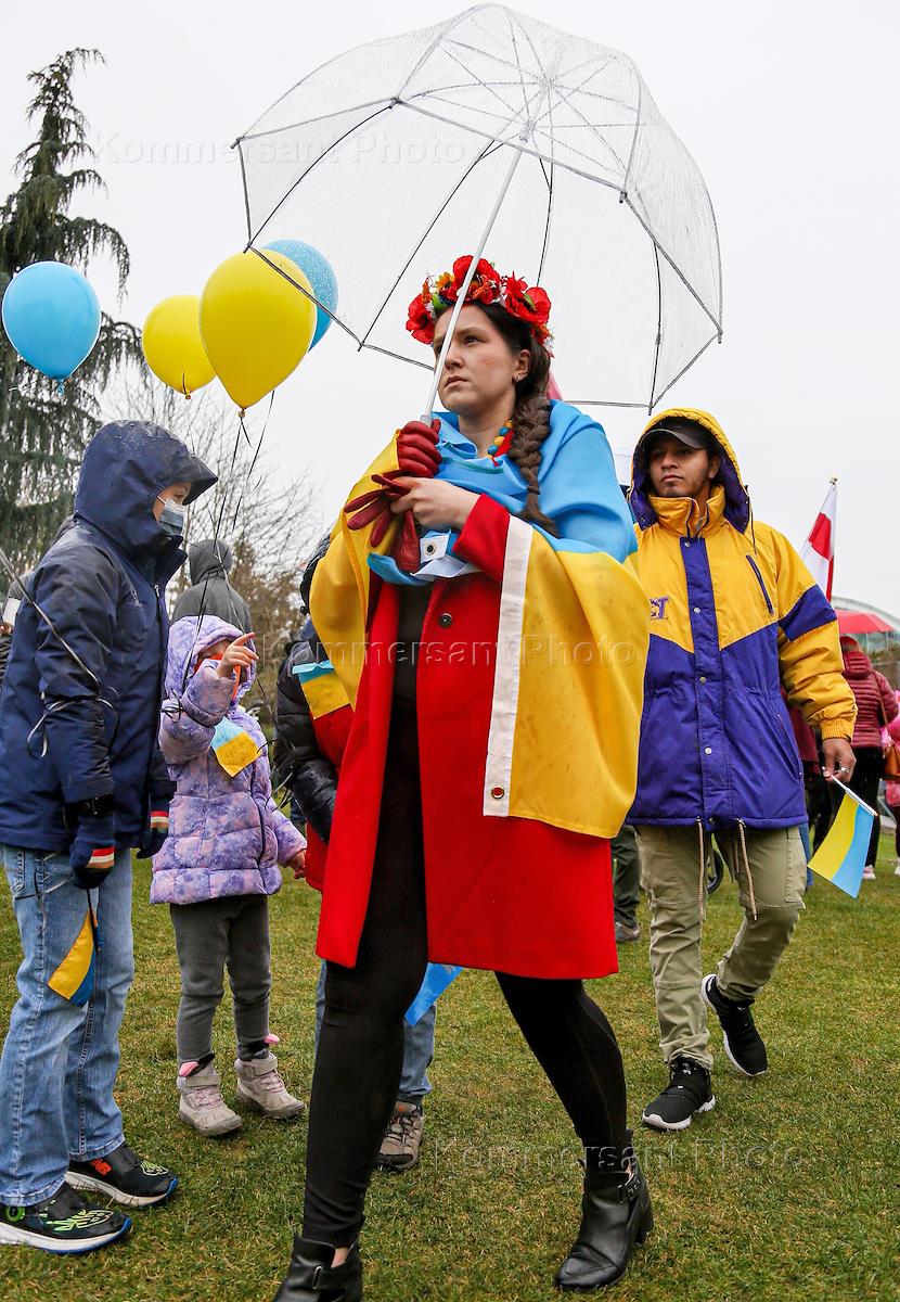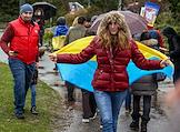 Участники во время митинга в поддержку Украины. Жанровая фотография.