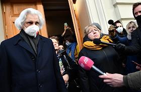Рассмотрение апелляционной жалобы на решение о ликвидации о ликвидации международной общественной организацией "Международное историко-просветительское, благотворительное и правозащитное общество "Мемориал" (внесен Министерством юстиции России в реестр некоммерческих организаций, выполняющих функции иностранного агента) в Верховном Суде России. Польская комиссия правозащитного общества "Мемориал" Александр Гурьянов Александр перед здание суда.