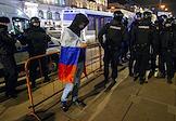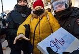 Несогласованная акция против специальной военной операции на Украине на Невском проспекте у Гостиного двора. 24 февраля президент России Владимир Путин объявил о начале военной спецоперации в ответ на обращение глав Донецкой Народной Республики (ДНР) и Луганской Народной республики (ЛНР) об оказании военной помощи. Участник во время акции.