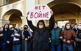 Несогласованная акция против специальной военной операции на Украине на Невском проспекте у Гостиного двора. 24 февраля президент России Владимир Путин объявил о начале военной спецоперации в ответ на обращение глав Донецкой Народной Республики (ДНР) и Луганской Народной республики (ЛНР) об оказании военной помощи. Участники во время акции.