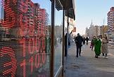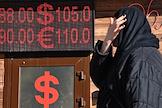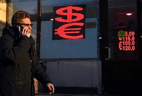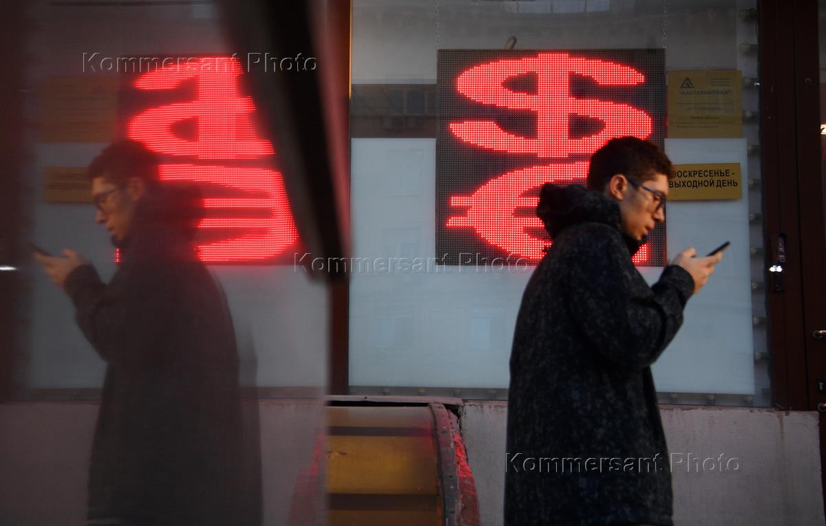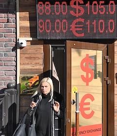 Жанровая фотография. Электронное табло на улице пункта обмена валюты с курсом доллара и евро.