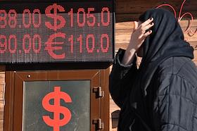 Курс валют на 1 марта 2022 года. Жанровая фотография. Электронное световое информационное табло с курсом доллара и евро пункта обмена валют.