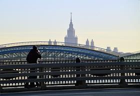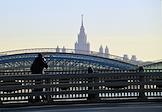Виды Москвы. Мост Богдана Хмельницкого через Москва-реку и главное здание Московского государственного университета (МГУ) имени М.В.Ломоносова на Воробьевых горах.