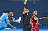 Российская Премьер-Лига (РПЛ). Тинькофф - Чемпионат России по футболу 2021/2022. 19-й тур. Матч между командами "Зенит" (Санкт-Петербург) - "Рубин" (Казань) на стадионе "Газпром Арена" (Санкт-Петербург). Главный судья Евгений Кукуляк (в центре) во время матча.