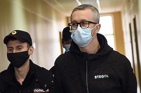 Заседание Верховного суда Крыма по уголовному делу о подрыве газопровода в селе Перевальное Симферопольского района. Обвиняемый в диверсии – заместитель главы запрещенного в России экстремистского объединения "Меджлис" Нариман Джелялов перед началом заседания суда.