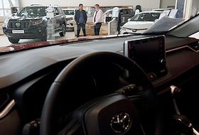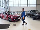 Жанровая фотография. Сотрудник "Тойота Центр Шереметьево", автомобили Toyota в автосалоне.