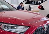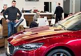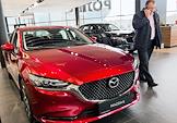 Жанровая фотография. Покупатель у автомобиля Mazda в автосалоне "Рольф".