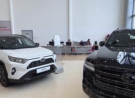 Жанровая фотография. Сотрудники "Тойота Центр Шереметьево", автомобили Toyota в автосалоне.