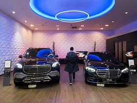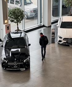 Жанровая фотография. Покупатель у автомобиля Mersedec в автосалоне "Автофорум. Шереметьево".