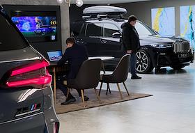 Жанровая фотография. Покупатель у автомобиля BMW в автосалоне "Рольф Премиум".