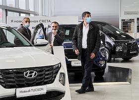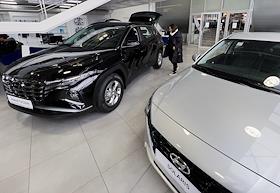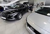 Жанровая фотография. Покупатели у автомобиля HYUNDAI в автосалоне "Рольф Премиум".