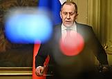 Переговоры министра иностранных дел РоссииСергея Лаврова и министра иностранных дел Киргизской Республики Руслана Казакбаева в Доме приемов МИД России. Министр иностранных дел России Сергей Лавров во время пресс-конференции по итогам переговоров.