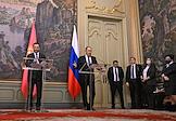 Переговоры министра иностранных дел России Сергея Лаврова и министра иностранных дел Киргизской Республики Руслана Казакбаева в Доме приемов МИД России. Специальный представитель президента России по международному культурному сотрудничеству Михаил Швыдкой (справа) во время переговоров.