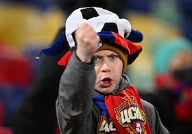 Российская Премьер-Лига (РПЛ). Тинькофф - Чемпионат России по футболу 2021/2022. 20-й тур. Матч между командами "ЦСКА" (Москва) - "Нижний-Новгород" (Нижний-Новгород) на стадионе "ВЭБ Арена". Болельщик ЦСКА перед началом матча.
