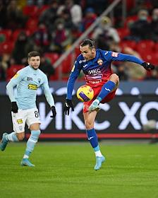 Российская Премьер-Лига (РПЛ). Тинькофф - Чемпионат России по футболу 2021/2022. 20-й тур. Матч между командами "ЦСКА" (Москва) - "Нижний-Новгород" (Нижний-Новгород) на стадионе "ВЭБ Арена". Игрок команды ЦСКА Юсуф Языджи (справа) во время матча.