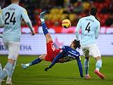 Российская Премьер-Лига (РПЛ). Тинькофф - Чемпионат России по футболу 2021/2022. 20-й тур. Матч между командами "ЦСКА" (Москва) - "Нижний-Новгород" (Нижний-Новгород) на стадионе "ВЭБ Арена". Игрок команды ЦСКА Юсуф Языджи (в центре) во время матча.