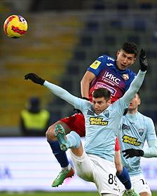 Российская Премьер-Лига (РПЛ). Тинькофф - Чемпионат России по футболу 2021/2022. 20-й тур. Матч между командами "ЦСКА" (Москва) - "Нижний-Новгород" (Нижний-Новгород) на стадионе "ВЭБ Арена". Игрок команды ЦСКА Бактиёр Зайнутдинов (слева) во время матча.