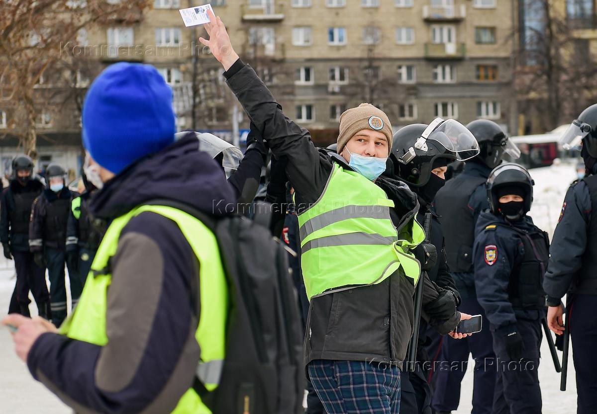 Несогласованная акция протеста против специальной военной операции Вооруженных Сил России на Украине на площади Ленина. Сотрудники полиции во время задержания участников акции.