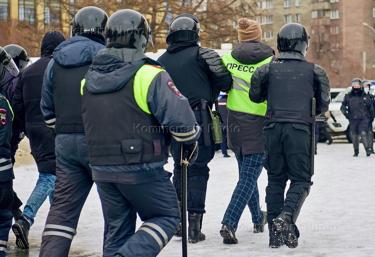 Несогласованная акция протеста против специальной военной операции Вооруженных Сил России на Украине на площади Ленина. Сотрудники полиции во время задержания участников акции.