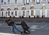 Несогласованные акции против специальной операции на Украине у Гостиного двора на Невском проспекте. Сотрудник правоохранительных органов во время задержания участника акции.
