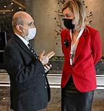 Рабочая поездка министра иностранных дел России Сергея Лаврова в Турцию. Турецко-российско-украинские переговоры в в Belek Regnum Carya Hotel. Директор Департамента информации и печати МИД России Мария Захарова (справа) перед началом переговоров.