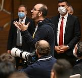 Рабочая поездка министра иностранных дел России Сергея Лаврова в Турцию. Турецко-российско-украинские переговоры в в Belek Regnum Carya Hotel. Жанровая фотография. Журналисты по время пресс-конференции по итогам переговоров.