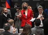 Рабочая поездка министра иностранных дел России Сергея Лаврова в Турцию. Турецко-российско-украинские переговоры в в Belek Regnum Carya Hotel. Директор Департамента информации и печати МИД России Мария Захарова во время пресс-конференции по итогам переговоров.