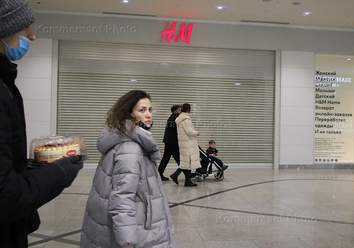 Жанровая фотография. Закрытый магазин "H&M" в торговом комплексе. Розничная сеть торговли одеждой "Hennes & Mauritz" (H&M) временно приостановила продажи на территории России.