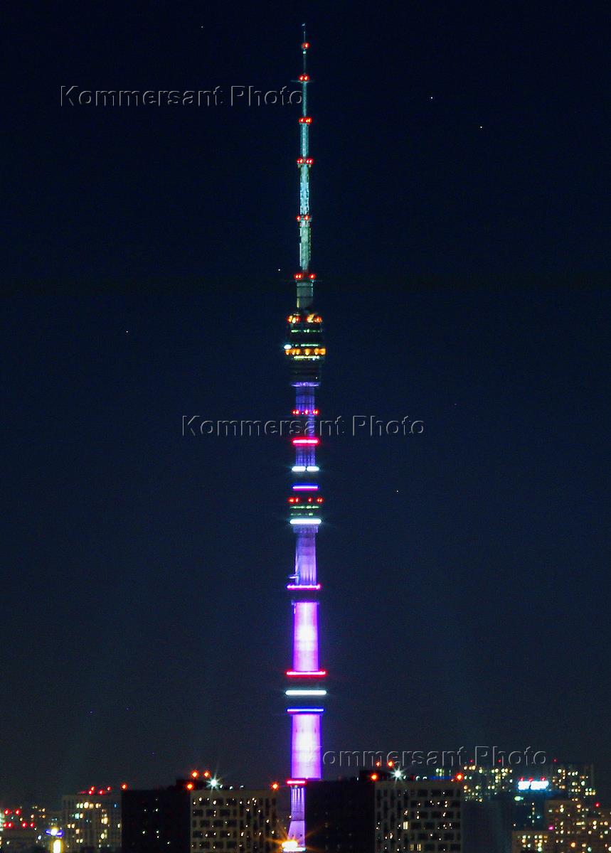 Виды Москвы. Жанровая фотография. Останкинская телевизионная башня в праздничном освещении.