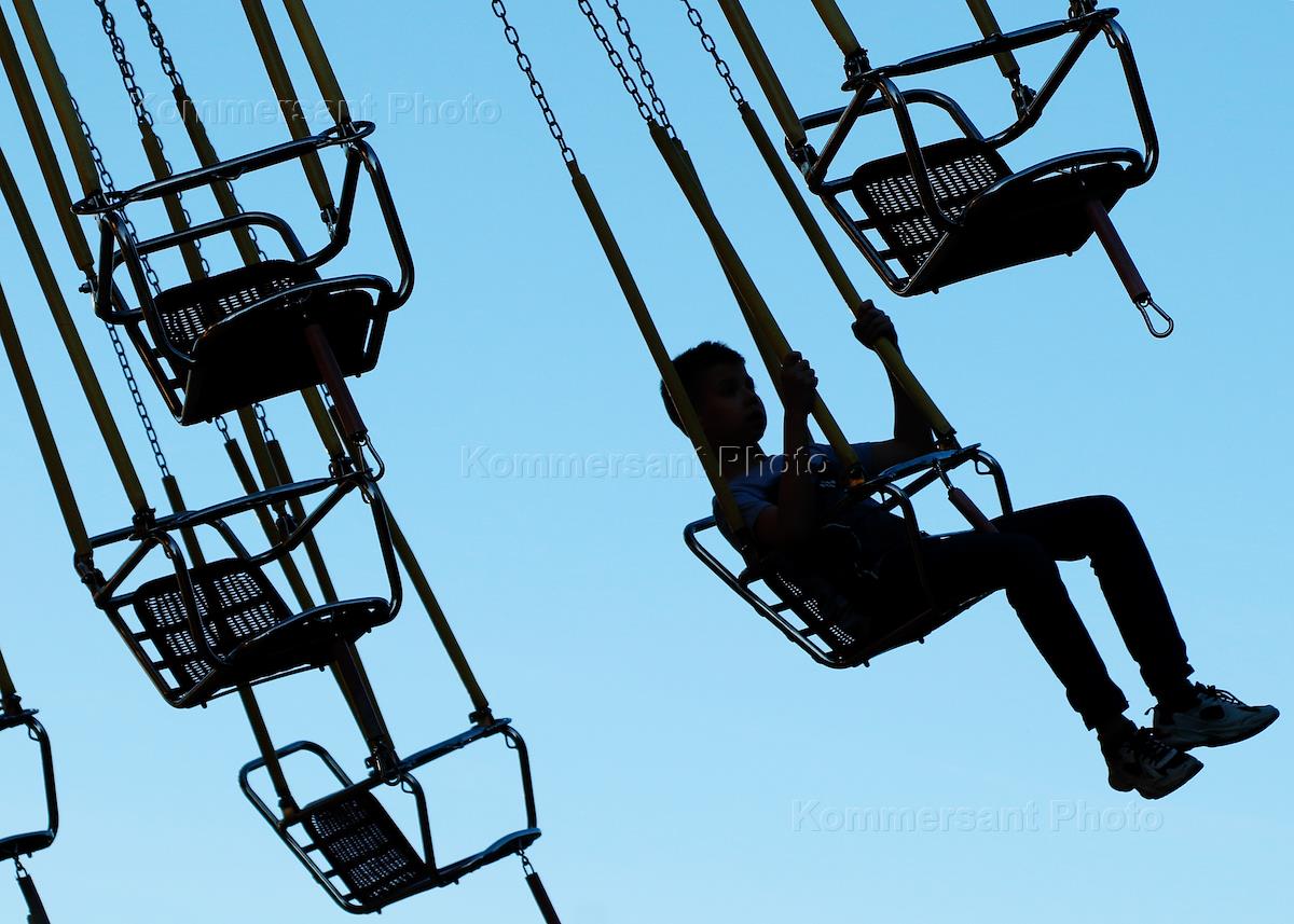 Жанровая фотография. Отдыхающие на аттракционах в парке.