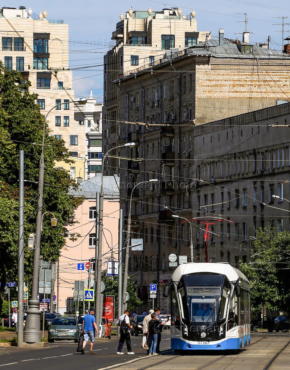 Виды Москвы. Жанровая фотография. Автомобильная дорога с трамвайными путями.