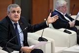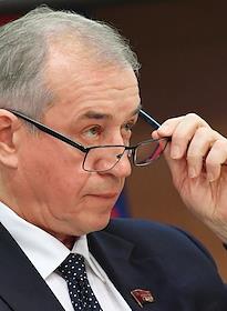 Parliamentary hearings of the faction of the Communist Party of the Russian Federation on the topic: "On topical issues of the development of the fuel and energy complex of Russia" in the Small Hall of the State Duma of Russia. First Deputy Chairman of the Russian State Duma Energy Committee Sergei Levchenko (right) during a hearing.