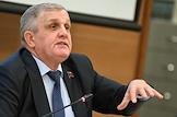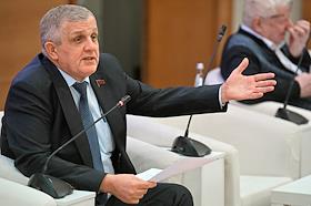 Parliamentary hearings of the faction of the Communist Party of the Russian Federation on the topic: "On topical issues of the development of the fuel and energy complex of Russia" in the Small Hall of the State Duma of Russia. First Deputy Chairman of the State Duma Committee on Labour, Social Policy and Veterans Affairs Nikolai Kolomeytsev during the hearing.
