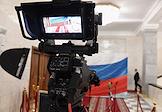 Parliamentary hearings of the faction of the Communist Party of the Russian Federation on the topic: "On topical issues of the development of the fuel and energy complex of Russia" in the Small Hall of the State Duma of Russia. Genre photography. Video camera in the hall of the State Duma of Russia.