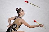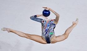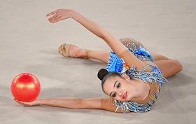 Championship of Russia in rhythmic gymnastics in the individual program. The final of the individual all-around at the Irina Viner-Usmanova Gymnastics Palace. Gymnast Anna Sokolova performing.
